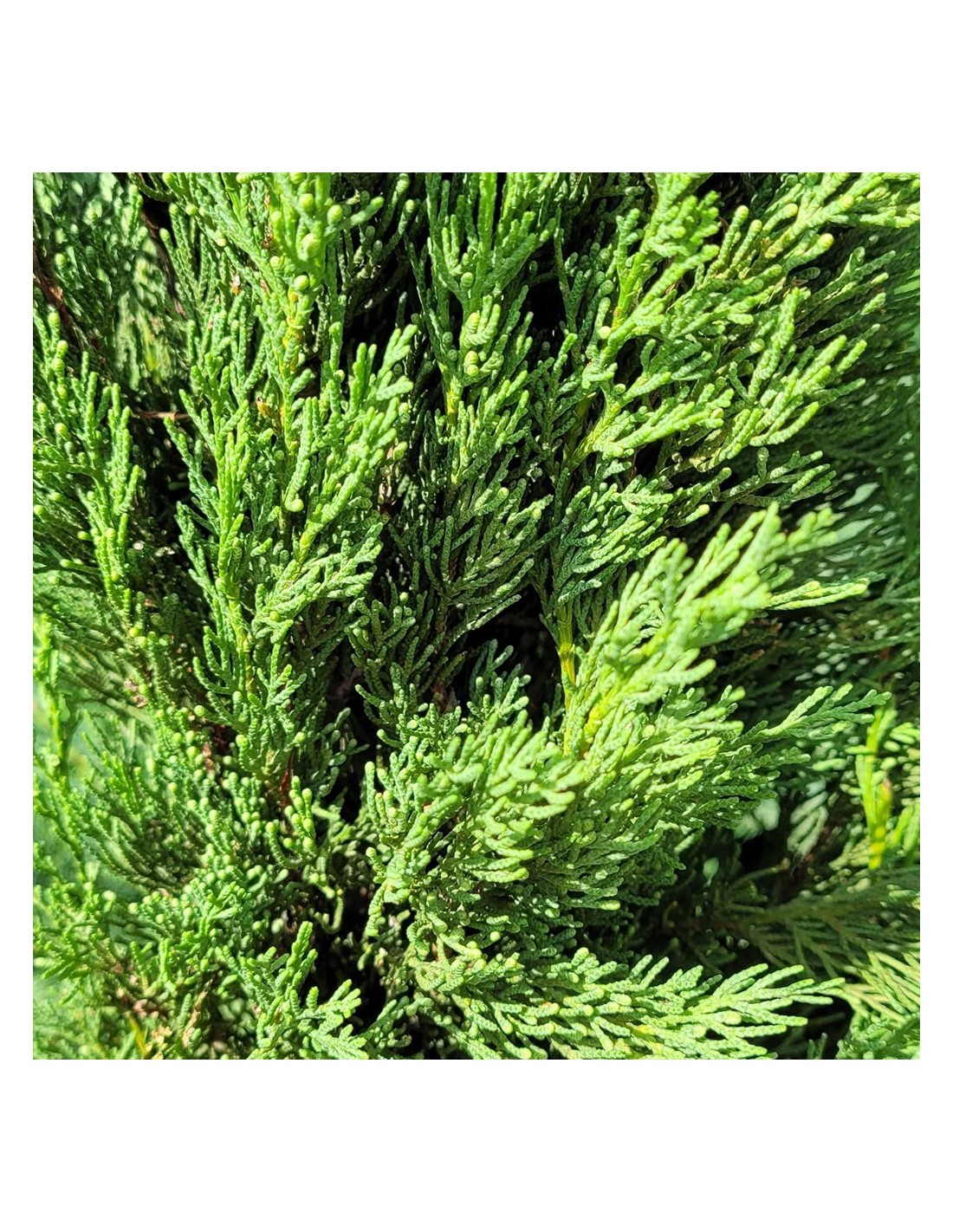 Mais contrairement au cyprès de Leyland, la pousse du cyprès de Provence a un port longiligne ou colonnaire. C'est à dire que sa base est beaucoup plus étroite (environ 1 m de diamètre adulte) et se termine en forme de pointe.