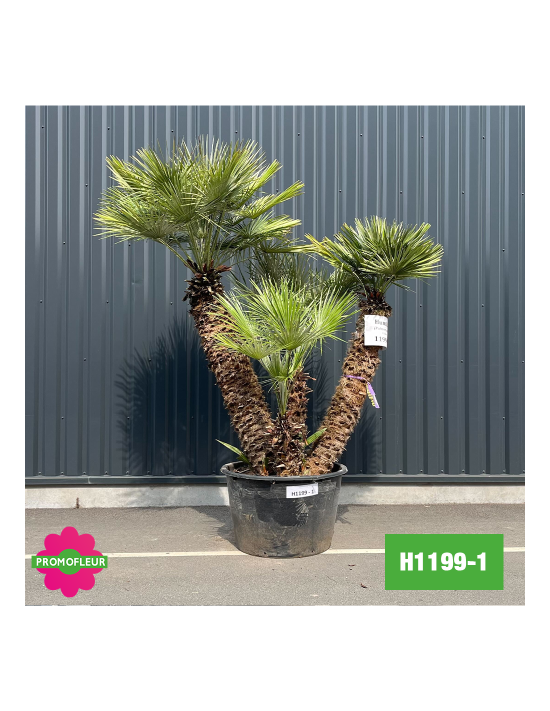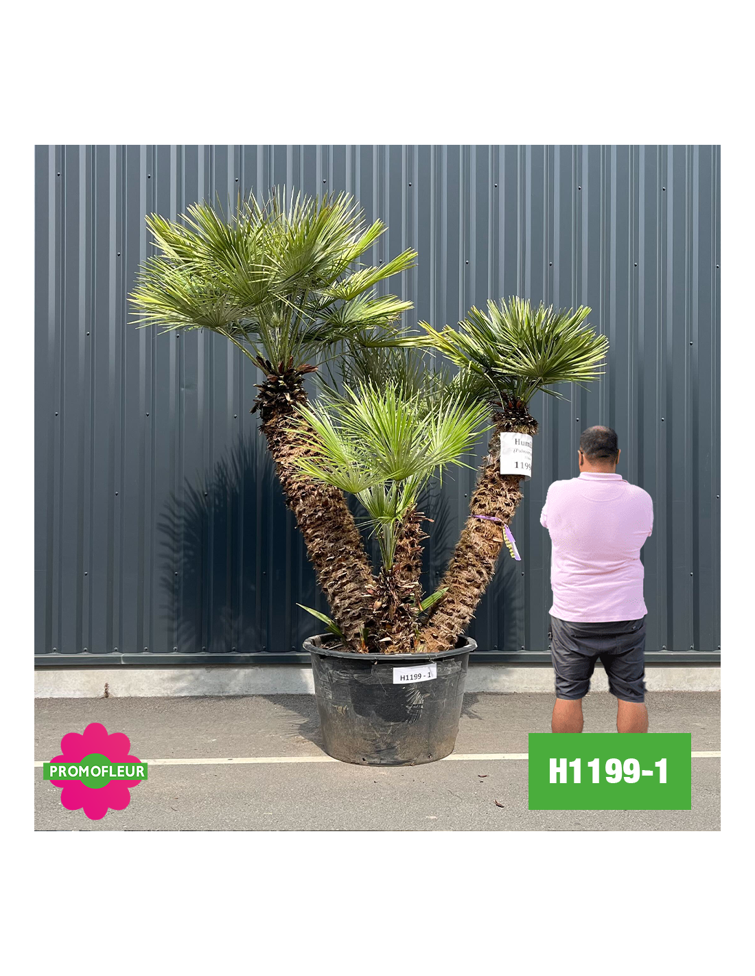 Est-ce un palmier pas cher ? En tout cas pour beaucoup de nos clients, le H1199-1 est un palmier nain multi-troncs de 220 cm de hauteur qui respecte notre slogan « La Fleur et le Jardin à Prix Content » !
