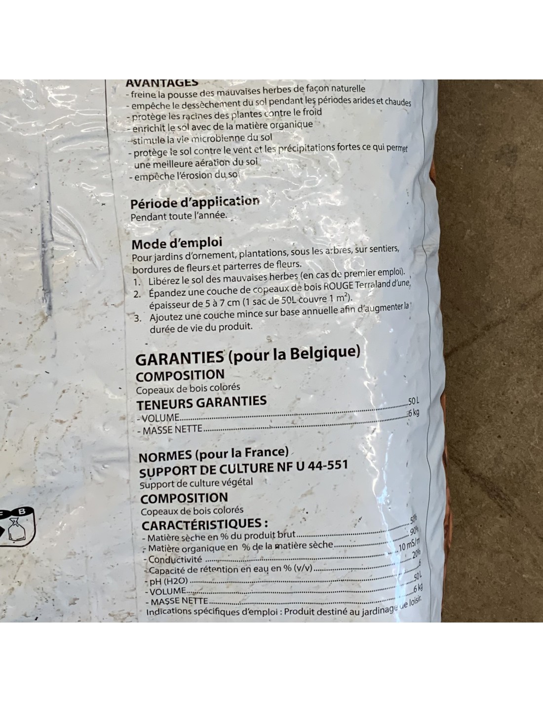 Pour les jardins d'ornement, plantations, sous les arbres, sur sentiers, bordures de fleurs et parterres de fleurs ! Avant utilisation il convient de libérer le sol des mauvaises herbes; d'épandre une couche de copeaux de bois rouge Terraland d'une épaisseur de 5 à 7 cm (1 sac de 50 litres couvre 1 m²) et enfin d'ajouter une couche mince sur base annuelle afin d'augmenter la durée de vie du produit.
