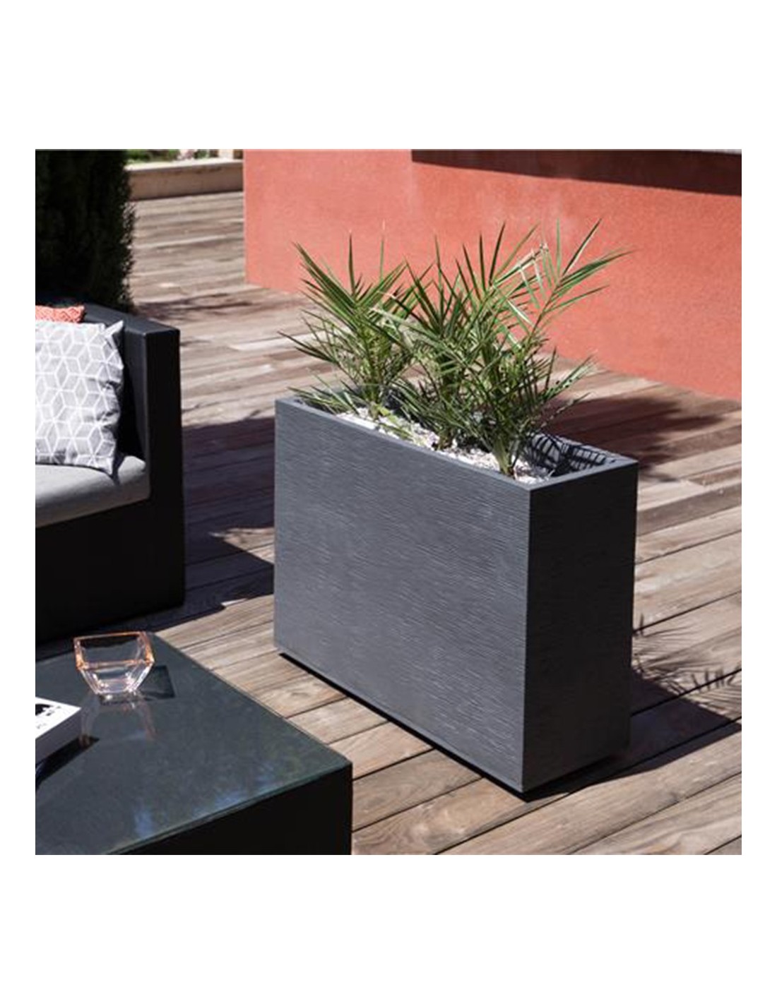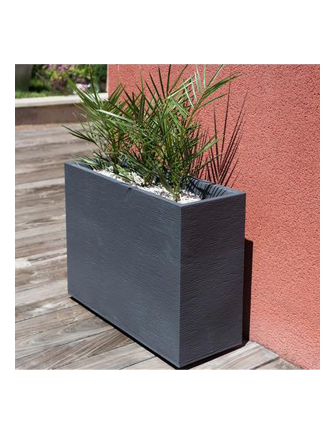 Le Muret EDA "Graphit" Gris anthracite de 78,5 cm de longeur donnera un design épuré à votre terrasse, jardin ou dans votre intérieur. Élaboré en polypropylène, résine légère et robuste, ce bac Graphit retient la terre et l'eau à la bonne croissance de vos arbustes, fleurs et plantes.